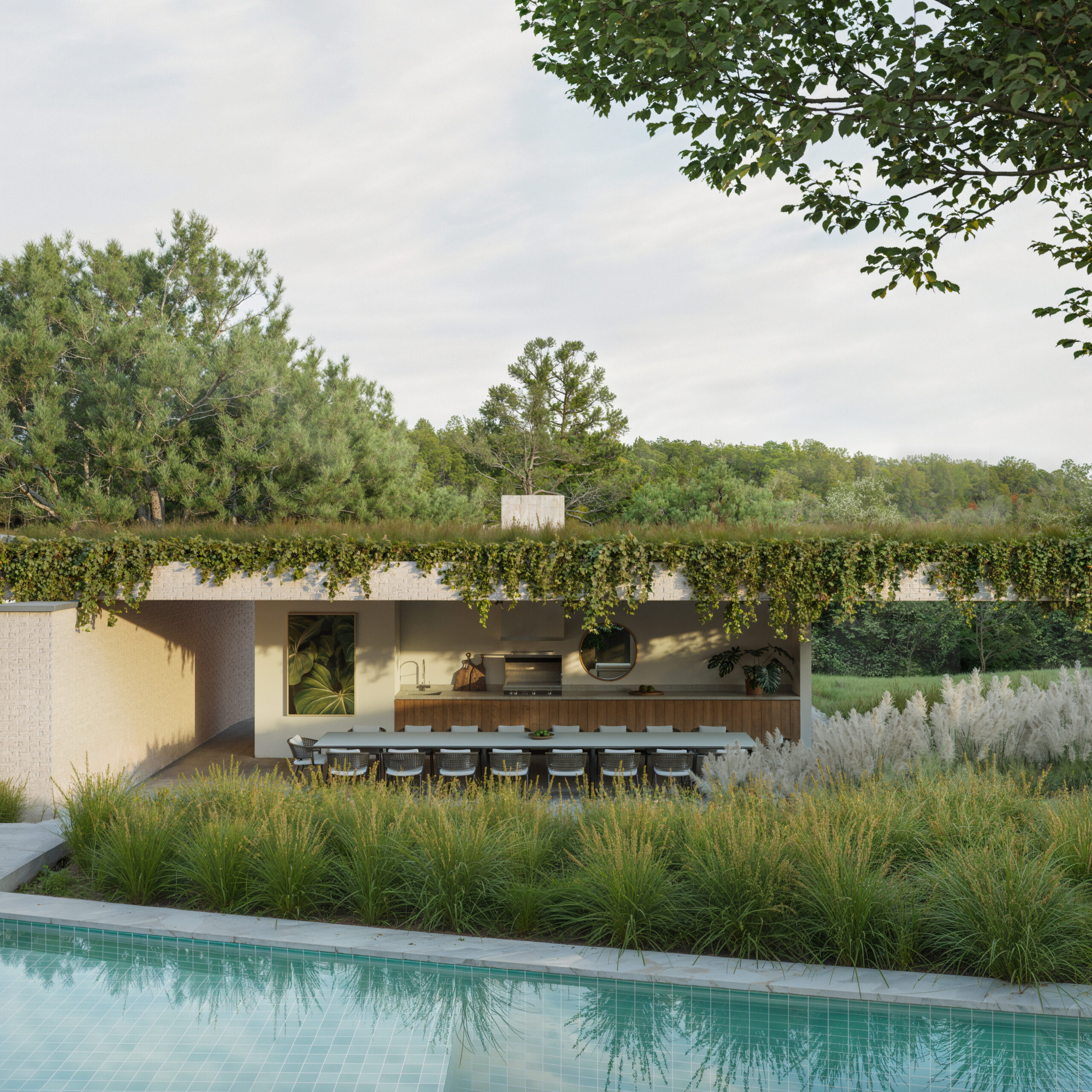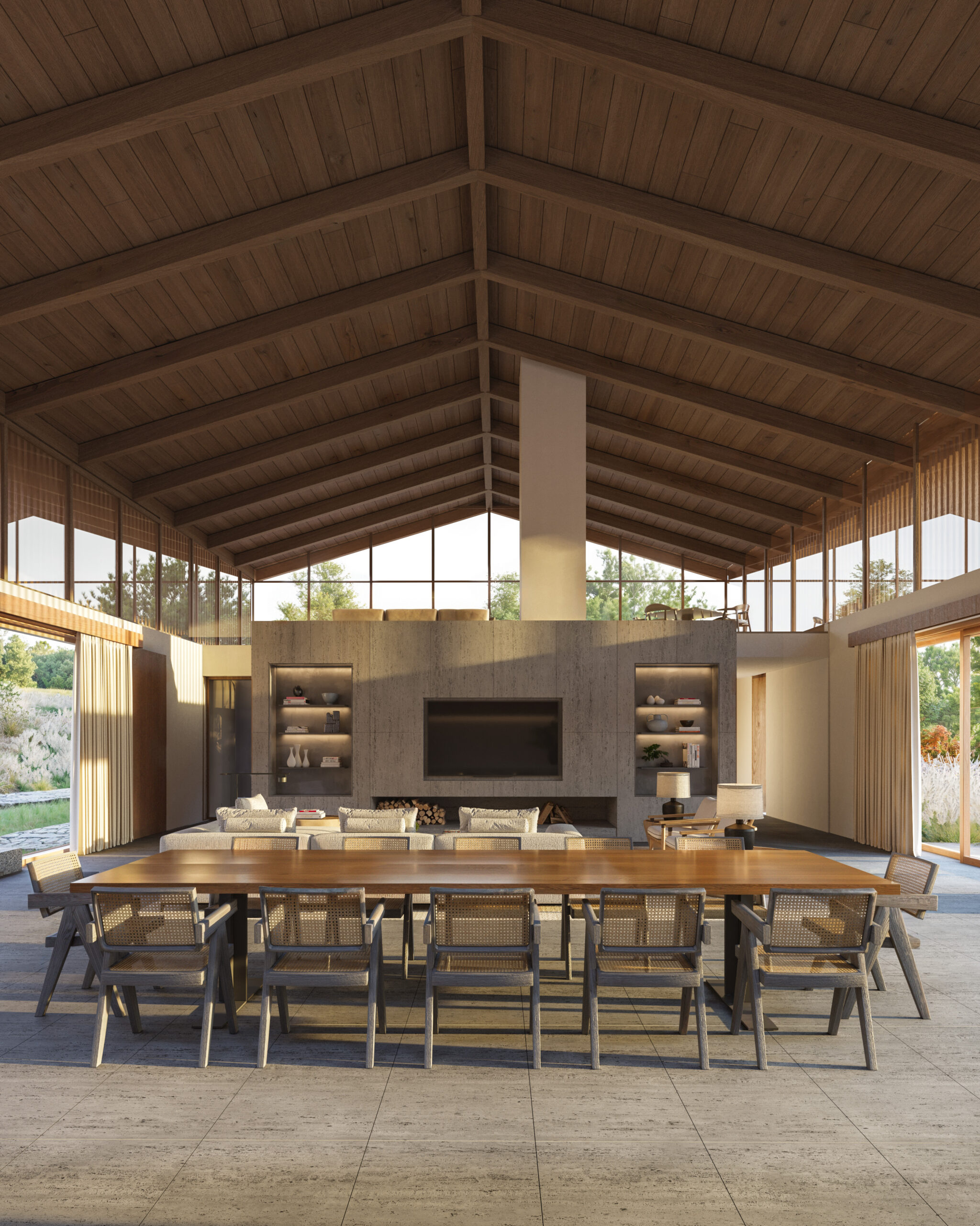 Assim, a residência se configura como um refúgio onde arquitetura e paisagem se entrelaçam de maneira equilibrada, conciliando abertura e privacidade, técnica e sensibilidade, tradição e contemporaneidade — uma arquitetura rústica revisitada, pensada para acolher, proteger e conectar.