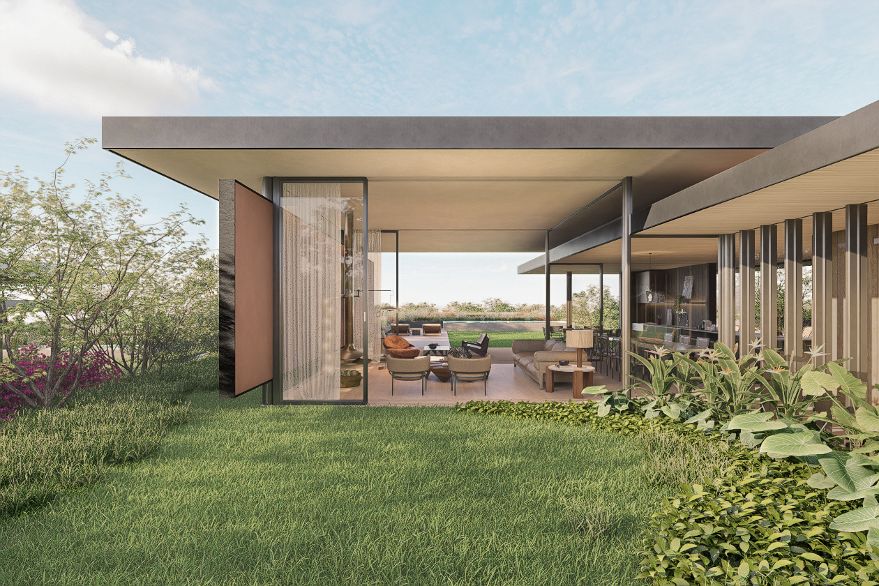 O resultado é uma casa que não apenas ocupa o terreno, mas o interpreta. Uma arquitetura que nasce da topografia, se molda à paisagem e traduz, em forma, material e espaço, os valores do empreendimento Fazenda Vista Verde: integração ambiental, qualidade de vida, sofisticação discreta e profundo respeito ao ambiente natural.